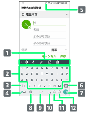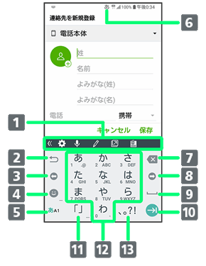 | 入力モード | 入力する文字種を切り替えます。 | |