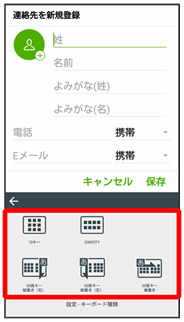 ソフトウェアキーボードには1つのキーに複数の文字が割り当てられている「10キーキーボード」と、1つのキーに1つの文字が割り当てられている「QWERTYキーボード」、50音の並びで表示される「50音キーキーボード」があります。また、「音声入力モード」と「手書き入力キーボード」も利用できます。