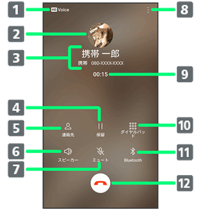 通話中は、アイコンをタップすることにより、次の機能が利用できます。
