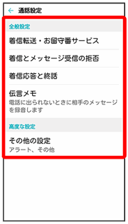 通話に関する設定ができます。設定できる項目は次のとおりです。