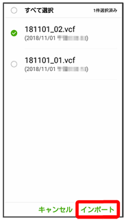 SDカードに保存(バックアップ)した電話帳データを読み込み(インポート)できます。