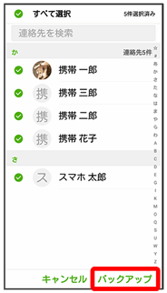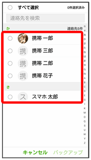 をタップすると、すべての連絡先を選択/解除できます。