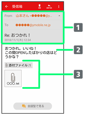 新着のMMSを受信すると、新着メッセージの通知と、通知アイコンが表示されます。