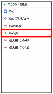 アカウントの追加画面が表示されます。