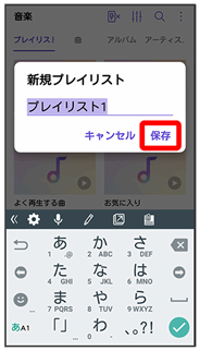 • 新規プレイリストをタップすると、新たにプレイリストを作成して、そのプレイリストに曲を追加できます。