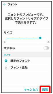 | 文字 | 画面に表示される文字の大きさやフォントを設定します。 | |