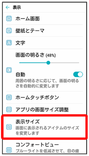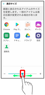 | 表示サイズ | 画面に表示されるアイコンや文字などの大きさを設定します。 | |
