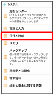 | 日付と時刻 | 日付や時刻に関する機能を設定できます。 | |