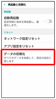 | 再起動と初期化 | 自動再起動の設定や、ネットワーク設定のリセット、アプリの設定のリセット、初期状態にリセットができます。 | |