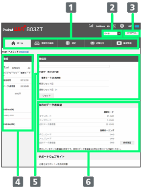 | 前回リセットしてからのデータ通信量などを表示します。 | ||
