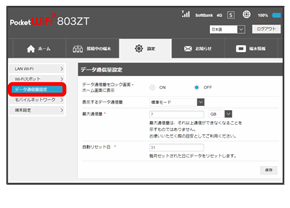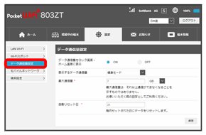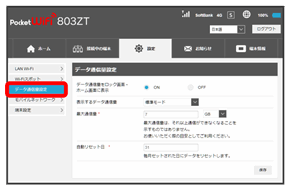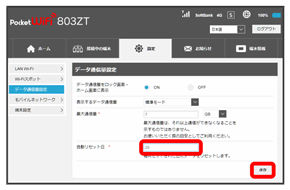 毎月、データ通信量を自動的にリセットする日を設定できます。
