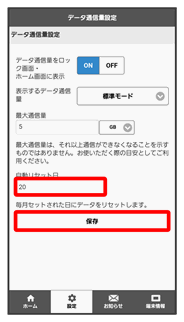 毎月、データ通信量を自動的にリセットする日を設定できます。
