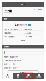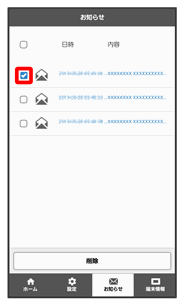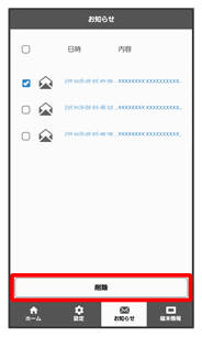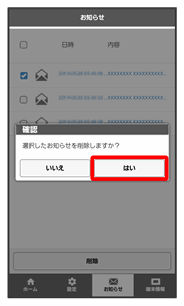 新しいお知らせを受信した場合、本機のホーム画面のタッチメニューにお知らせの件数が表示されます。モバイル機器のWEB UIで操作中は、「お知らせ」メニューからお知らせを確認できます。