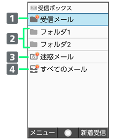 - 受信ボックス/送信ボックス画面でフォルダを選択
