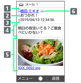- 受信/送信メール詳細画面で本文中の添付画像を選択