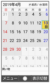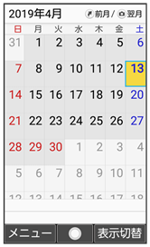 (表示切替)を押すと、カレンダーの表示を切り替えることができます。 - 1ヵ月表示で日付を選択するときは