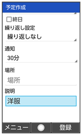 )が切り替わります。 - OFFにしたあとに再度ONにすると、重要度が中に設定されます。予定を音声で通知させるときは、重要度を緊急/高に設定してください。