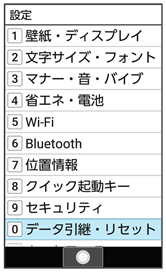 - データ引継・リセット画面でリセット