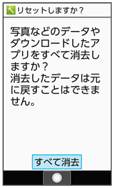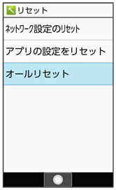 - オールリセットを行うと、内部ストレージのデータがすべて消去されます。必要なデータは事前にバックアップをとることをおすすめします。