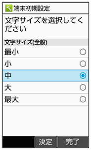 はじめて本機の電源を入れたときは、初期設定画面が表示され、機能の連携について設定したり、文字サイズの設定を行うことができます。