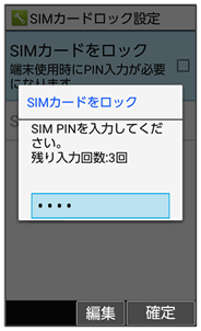 SIMカードロック設定時に電源を入れると、PINコード入力画面が表示されます。次の操作を行うと、本機が使用できます。