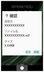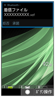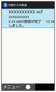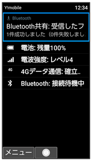 相手からデータの受信要求があると、Bluetooth®着信ファイル通知が表示されます。次の操作を行うと、受信することができます。