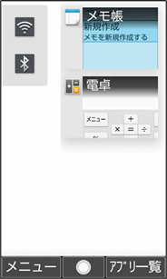 使用している機能の履歴一覧を表示して、そこから機能を呼び出します。また、Wi-FiやBluetooth®のON/OFFを切り替えることができます。