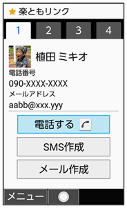 よく連絡する相手を楽ともリンクに登録すると、簡単に電話がかけられます。