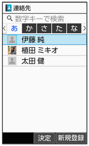 スピードダイヤル一覧画面で登録済みの番号を選択
