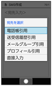 • ↓電話帳引用送受信履歴引用メールグループ引用プロフィール引用直接入力