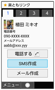 よく連絡する相手を楽ともリンクに登録すると、簡単にSMSを送信することができます。