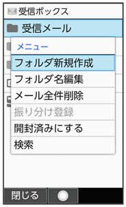 相手のメールアドレスや、件名などによって、自動的にメールをフォルダに振り分けることができます。ここでは電話帳に登録している差出人を指定してメールを振り分ける方法を例に説明します。