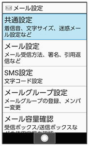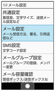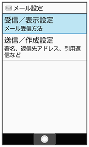 受信/表示設定 メール/SMS受信時の設定を行います。メール/SMSを受信するときの着信音や表示に関する項目などを設定します。