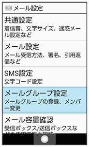 • グループを選択中にicn_button_mail(メニュー)→全選択全解除と操作すると、すべてのグループを選択(aquos-keitai3_icon_062)/解除(aquos-keitai3_icon_063)できます。