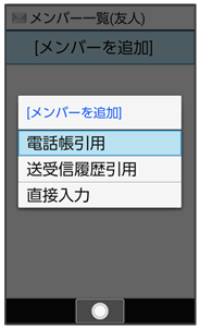 • グループを選択→icn_button_centerと操作するたびに、選択(aquos-keitai3_icon_062)/解除(aquos-keitai3_icon_063)が切り替わります。