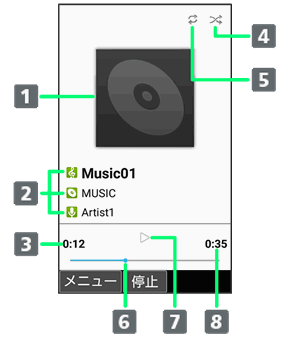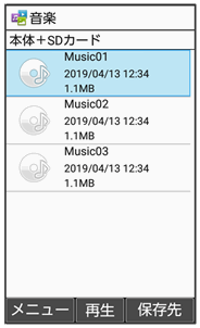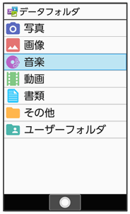 ここでは、データフォルダから音楽を選択して再生する方法を例に説明します。