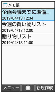 メモが表示されます(メモ帳表示画面)。