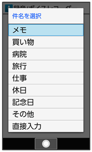 録音終了音が鳴ったあと、件名の選択画面が表示されます。