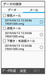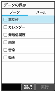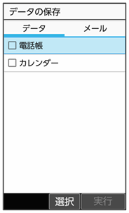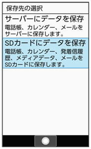 本体の電話帳データ/カレンダーデータ/発着信履歴データ/画像データ/音楽データ/動画データを、サーバー/SDカードなどに保存します。