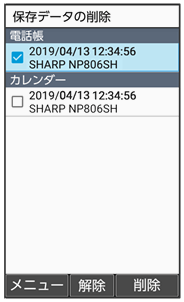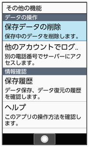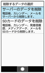 サーバー/SDカードなどに保存した電話帳データ/カレンダーデータ/発着信履歴データ/画像データ/音楽データ/動画データ/メールデータを削除します。