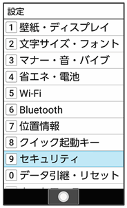画面のロックや暗証番号など、セキュリティに関する機能を設定できます。設定できる項目は次のとおりです。