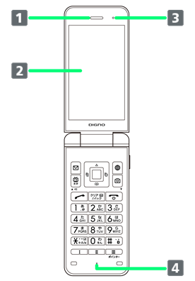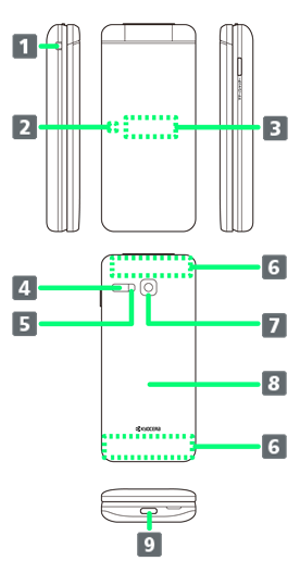 | 通話時、インターネット利用時などに使用します。感度に影響しますので、シールなどを貼ったり手で覆ったりしないでください。 | ||