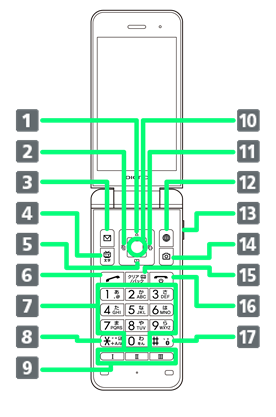 | 「♯」を入力、すぐ文字を起動1、Bluetooth®のON/OFF(長押し) |