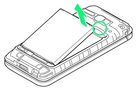 - 背面カバーのくぼみに指先をかけて、電池カバーを矢印の方向へゆっくりと持ち上げるようにして取り外してください。