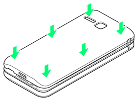 • 電池カバーの外周をicn_decimal_01の方向になぞり、icn_decimal_02の方向にしっかり押さえ、完全に装着させる