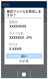 ペア設定している機器からデータの受信要求があると、通知パネルに共有通知が表示されます。次の操作を行うと、データを受信できます。