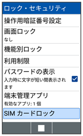 USIMカードロックを設定すると、本機の電源を入れたとき、PINコード(USIMカード用の暗証番号)を入力しないと本機が使用できなくなります。第三者の無断使用を防ぐために有効です。