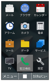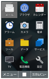 | データ(データフォルダ) | 本体メモリ/SDカードに保存されている写真、動画、音楽やその他のファイルをデータフォルダで確認することができます。 データフォルダについて詳しくは、「データを利用する(データフォルダ)」を参照してください。 |