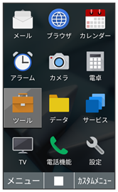 | ツール | メモ帳や歩数計などの便利なツールを利用できます。 ツールの使いかたについて詳しくは、「ツールメニューを利用する」を参照してください。 |
