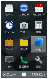 | サービス | あんしんバックアップや緊急速報メールなどのサービスを利用できます。 サービスの使いかたについて詳しくは、「サービスメニューを利用する」を参照してください。 |